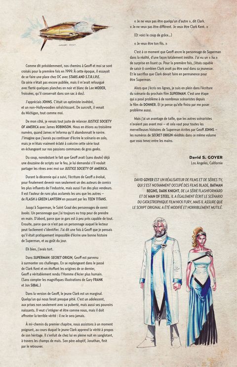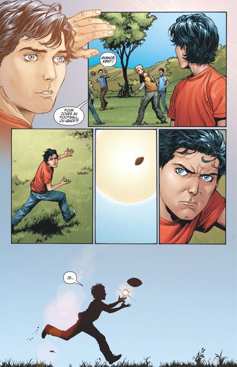 Ça se lit très vite, car les pages sont très agréables à découvrir, et pas trop verbeuses. Les passages à Smallville, durant la jeunesse de Clark, que ce soit avec ses parents ou Lana, ont leur lots d'instants touchants, et c'est doux ! Ce qui contraste totalement avec son âge (...) Voir le commentaire