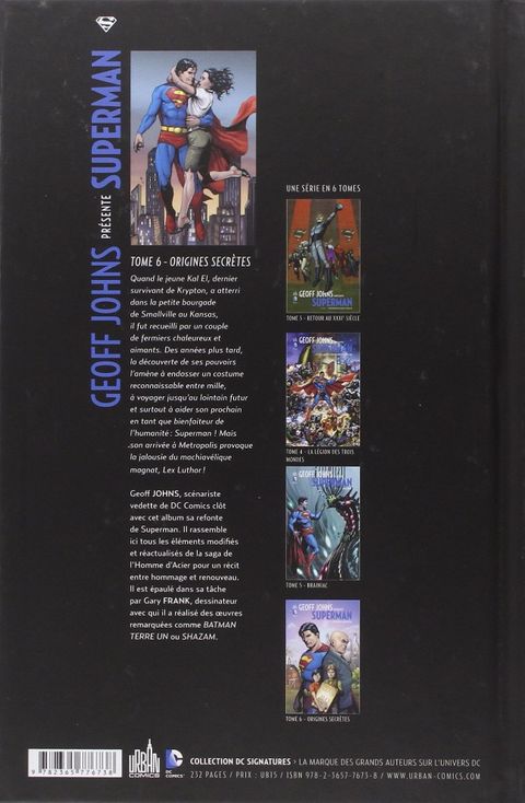 Geoff Johns et Gary Frank donnent leur version des origines de l’homme d’acier. On va retrouver dans ce récit tous les éléments : - les Kent et leur amour pour le jeune Clark - la jeunesse à Smallville - l’arrivée à Metropolis - lex Luthor - le daily Planet et ses membres - Le couple Loïs (...) Voir le commentaire