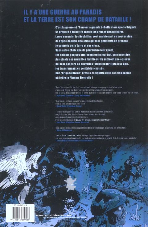SECOND ET DERNIER VOLET D'UNE CROISADE SURNATURELLE DONT DÉPEND LE SORT DU MONDE ! La guerre fait rage au Paradis et la Terre est son champ de bataille ! Prévue en quatre volets, cette remarquable série nous entraîne au coeur de la Seconde Guerre Mondiale, sur les traces d'une petite escouade de G.I.'s confrontée à l'avancée meurtrière des troupes allemandes. Mais tout bascule lorsque deux êtres mystérieux et enflammés tombent du ciel, deux archanges combattant pour la possession d'un étrange objet : l'Épée de Dieu. Débute alors un maelstrom d'horreurs et de destructions...