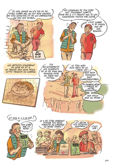 Histoire très agréable où l'auteur raconte la vie de son père et de son grand-père. On voyage avec l'auteur, on découvre une vie d'artiste, avec d'autres artistes, de vie de famille décomposée, recomposée...le tout avec une pointe d'humour. Les dessins se prêtent très bien à ce style de récit.