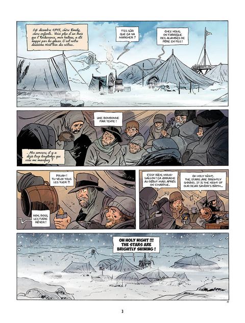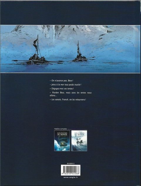 Vingt-sept hommes prisonniers des glaces. Depuis l'appareillage de L'Endurance le 5 décembre 1914 pour rejoindre le Pôle Sud, le périple ne s'est pas déroulé tout à fait comme prévu pour l'ensemble de l'équipage... Contraints d'abandonner leur navire pris dans la glace, les hommes de Sir Ernest Shackleton doivent poursuivre l'expédition à pieds. Situés encore à plusieurs milles de leur objectif, exténués, démotivés, affamés, ils ne sont pas au bout de leurs souffrances pour atteindre les bords du monde... Le vent glacial du dénouement souffle sur ce dernier tome où la réalité des faits repousse les limites de l'aventure fictionnelle...