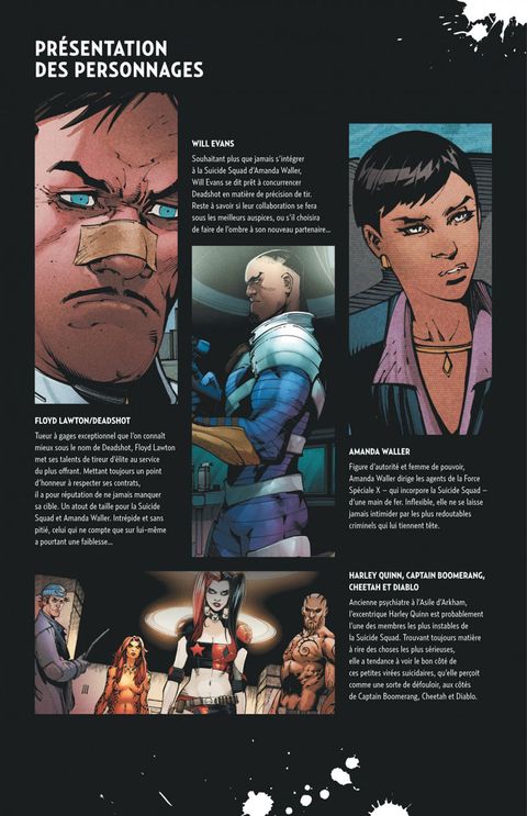 Tueur à gages de profession, Deadshot a une nouvelle cible. Mais lorsqu'on lui demande de faire équipe avec Will Evans, un membre da la Force Spéciale X, il sent bien que la situation n'est pas au beau fixe. Et quand les fantômes de son passé ressurgissent et que ses employeurs semblent se retourner contre lui, c'est une tout autre affaire qui se présente à lui. L'assassin le plus précis du monde y fera-t-il face... ? Contient : Suicide Squad Most Wanted - Deadshot #1-6