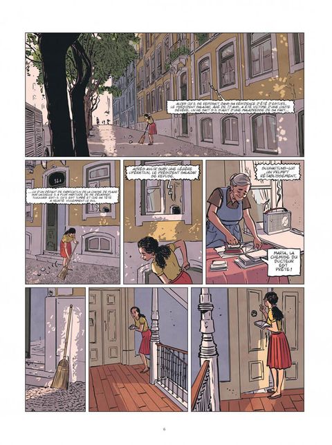 Sur des dessins « classiques », le découpage lent et académique (qu’on peut retrouver chez Juillard par exemple) instille brillamment une atmosphère qui fait partie intégrante de ce projet de reconstitution d’une vie calme sous une dictature qui se ferait presque oublier sous la chaleur et les nuits de Fado. (...) Voir le commentaire