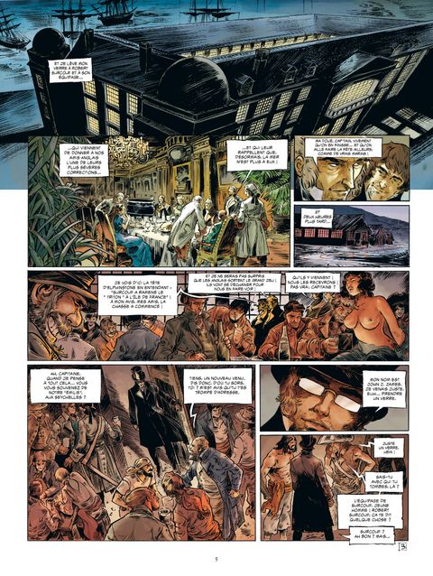 De l'Île de France aux Seychelles, de Cantaye, dans l'archipel de la Sonde, au large de Saint-Paul, Surcouf revient... Et continue de tisser sa légende ! Vainqueur du Triton, le voilà de retour à Port-Louis, où il fait la connaissance de l'espion anglais chargé de le tuer, Jonas Wiggs... Entre souvenirs de poursuites insensées au milieu des récifs, batailles navales et procès à Paris, Surcouf passe au milieu des cyclones. Il épouse Manon à Saint-Malo avant de faire revenir front sur toutes les mers. À bord de la Clarisse et de la Confiance navigant avec son propre frère, il continue de rendre folle l'amirauté anglaise, qui enrage et jette contre lui tous ses feux. Mais voici que la main de l'espion tremble... Jonas Wiggs ira-t-il au bout de sa mission ? Tuera-t-il dans son sommeil le roi des corsaires ? Sans doute... À moins que le destin n'en décide autrement ! Hissez les voiles ! Et attention ! Le Tigre des Mers s'est réveillé...