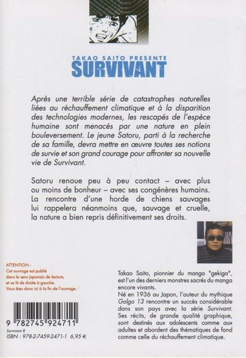 Après une terrible série de catastrophes naturelles liées au réchauffement climatique et à la disparition des technologies modernes, les rescapés de l'espèce humaine sont menacés par une nature en plein bouleversement. Le jeune Satoru, parti à la recherche de sa famille, devra mettre en oeuvre toutes ses notions de survie et son grand courage pour affronter sa nouvelle vie de Survivant. Satoru renoue peu à peu contact - avec plus ou moins de bonheur - avec ses congénères humains. La rencontre d'une horde de chiens sauvages lui rappellera néanmoins que, sauvage et cruelle, la nature a bien repris définitivement ses droits.
