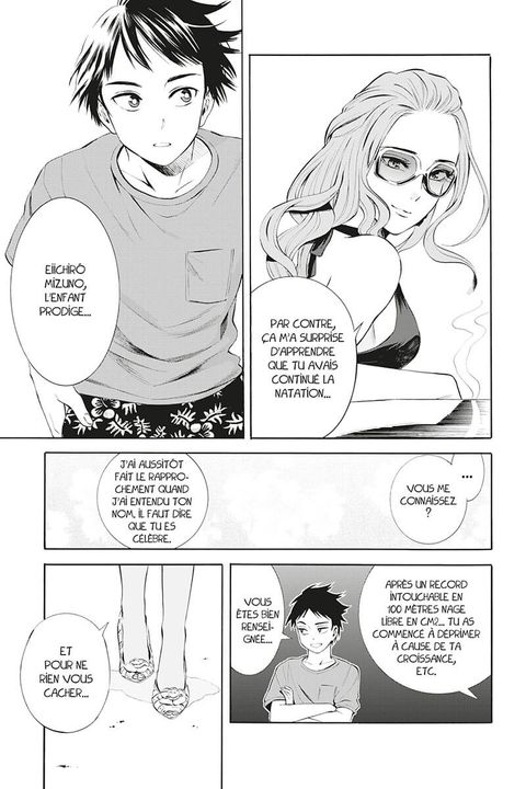 À la recherche d’indices pour se perfectionner, Eiichirô suit Ruka et son ancien coach à la péninsule d’Izu dans l’espoir de voir des dauphins. Kôichi Minato, le membre fantôme du club de natation, est de retour. Il propose à Eiichirô de participer avec luiau relais 4 x 100 mètres 4 nagesdu tournoi départemental.