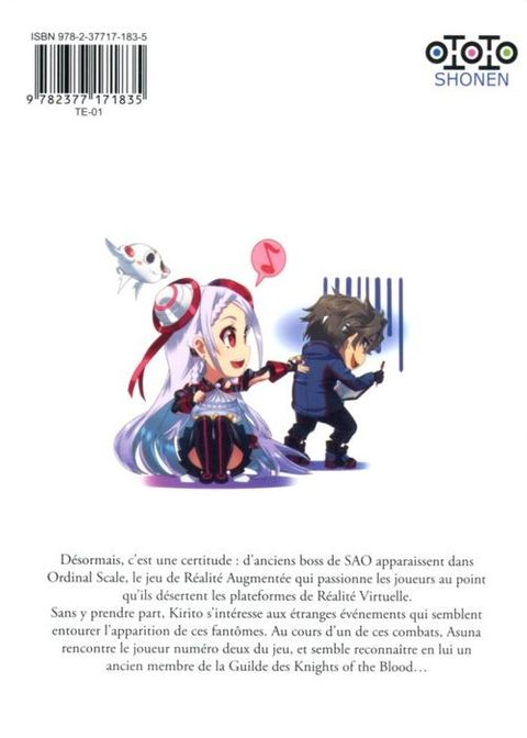 De´sormais, c'est une certitude : d'anciens boss de SAO apparaissent dans Ordinal Scale, le jeu de Re´alite´ Augmente´e qui passionne les joueurs au point qu'ils de´sertent les plateformes de Re´alite´ Virtuelle. Sans y prendre part, Kirito s'inte´resse aux e´tranges e´ve´nements qui semblent entourer l'apparition de ces fanto^mes. Au cours d'un de ces combats, Asuna rencontre le joueur nume´ro deux du jeu, et semble reconnai^tre en lui un ancien membre de la Guilde des Knights of the Blood...