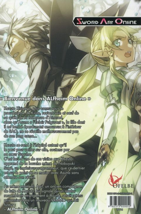« Bienvenue dans ALfheim Online » Kazuto Kirigaya, plus connu sous le pseudonyme de Kirito, revient sain et sauf de sa quête de la forteresse d’Aincrad, alors qu’Asuna « l’Éclair Fulgurant », la fille dont il est tombé éperdument amoureux à l’intérieur de SAO ne se réveille malheureusement pas de son long coma... Kazuto se rend à l’hôpital autant qu’il le peut pour veiller sur elle, soutenu par sa soeur Suguha. C’est lors d’une de ces visites que Kazuto apprend de la bouche même de Nobuyuki Sugô, un ingénieur-programmeur, que ce dernier est sur le point de se marier avec Asuna sans attendre son réveil. Au même moment, Agil, un ancien compagnon de lutte de Kazuto, lui signale qu’un avatar ressemblant étrangement à Asuna, serait retenu prisonnier dans un nouveau VRMMO qui fait fureur : « ALfheim Online » !