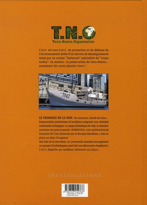 Le problème des ressources en eau potable devient crucial dans la bande de Gaza où la population est dense. Une équipe d'archéologues qui effectuait des fouilles dans le désert de Judée est décimée par une bande de tueurs après la découverte d'étranges canalisations. Une fois informés du massacre par un survivant, les responsables de T.N.O. (Terra Nostra.Org) envoient en Palestine la belle doctoresse Nuram Allenby rejoindre Yan le Mat et Rolf Ackerman déjà sur le terrain, deux solides gaillards qui n'ont pas froid aux yeux. Le détournement d'une source d'eau d'origine inconnue intéresse beaucoup de monde dont Hydroviva, société française spécialisée dans l'équipement et le traitement de l'eau, dont les méthodes pour arriver à ses fins ne sont pas toujours légales.