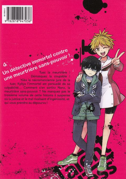 Qui sont les véritables ennemis de l'humanité ? Un bijou de suspense signé Square Enix !Tuez la meurtrière ! Démasquez la coupable ! Yûka la nécromancienne jure de la tuer, Kyôya l'immortel est persuadé de sa culpabilité... Comment s'en sortira Nana, la meurtrière sans-pouvoir ? Ne manquez pas le troisième volume de cette histoire à suspense où la justice et le mal rivalisent d'ingéniosité, et qui vous prendra au dépourvu !