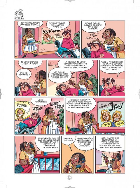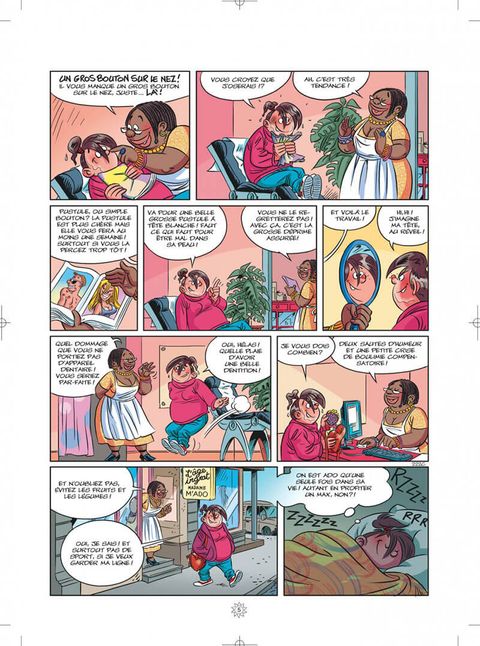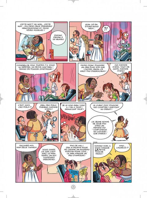 À la drague... Tout d'abord, perdre du poids, donc manger moins de crasses... hum... ça va pas être de la tarte ! De la tarte... oh j'en ai déjà envie, et j'ai une de ces faims ! Non je ne peux pas, je dois résister, je dois perdre au moins 995 gr pour ne peser plus que 82 kg ! Ensuite, faudrait que je m'inscrive à un centre de fitness... mais bon, on verra ça plus tard ! Mais, surtout rencontrer un amoureux... Pas un « Wagner » ! lui, c'est un con ! Un crétin ! Un débile ! Et pas non plus un garçon comme mon père... celui-là, je ne sais pas ce qui me retient de... grmftr ! Non, un garçon doux, romantique y a quand même moyen ! Je ne sais pas si les méthodes de Yoli sont vraiment efficaces : attraper un garçon au lasso, ou même un appeau pour garçons ?!! J'ai plutôt l'impression que je leur fais peur... oh mais oui... pourquoi je n'y ai pas pensé plus tôt ! Des tatoo's ! je vais me mettre des tatoo's partout et ils vont tomber comme des mouches, c'est sûr ! Vous aussi, vous avez une fille ou soeur ado quelque peu compliquée, un rien susceptible et un tantinet menue, et vous aussi ne savez pas toujours comment vous y prendre avec elle, demandez alors conseil auprès de Darasse et Zidrou ! En matière de puberté, ils s'y connaissent. Avec justesse, ils décrivent le quotidien d'une adolescente : problèmes de garçons, moqueries à l'école, boutons d'acné, familles recomposées. Le ton est piquant là où il faut et tendre comme il faut ; le tout, en évitant de tomber dans le cliché !