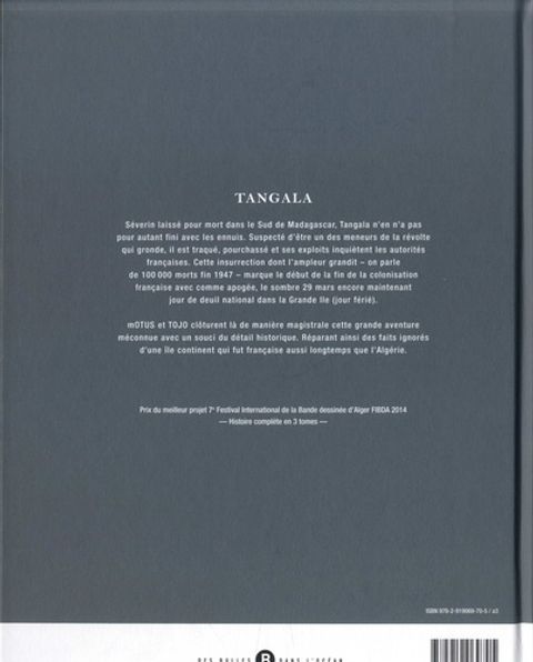 Séverin laissé pour mort dans le Sud de Madagascar, Tangala n'en n'a pas pour autant fini avec les ennuis. Suspecté d'être un des meneurs de la révolte qui gronde il est traqué, pourchassé et ses exploits inquiètent les autorités françaises. Cette insurrection dont l'ampleur grandit - on parle de 100 000 morts fin 1947 - marque le début de la fin de la colonisation françaises avec comme apogée le sombre 29 mars toujours jour de deuil national dans la grande île (jour férié). Motus et Tojo clôturent là de manière magistrale cette grande aventure méconnue avec un soucis du détail historique. Réparant ainsi les faits ignorés d'une île continent qui fût française aussi longtemps que l'Algérie.