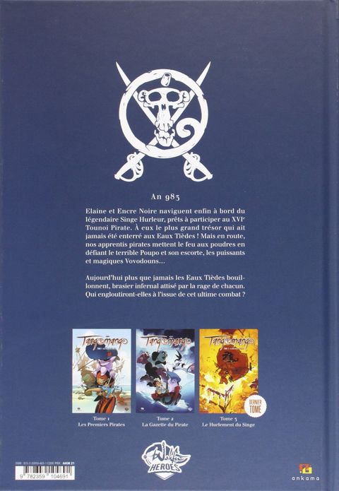 Dernier volume. Enfin Elaine et Encre Noire naviguent à bord d'un navire digne des plus grands pirates, condition ultime pour participer au XVIe Tounoi Pirate. En route vers le plus grand trésor qui n'ait jamais été enterré aux Eaux Tièdes ! Nos deux héros pensent avoir fait le plus dur et enfin aboutir à leur rêve, mais Poupo et ses terribles Vovodouns vont les amener à un combat où leur bravoure sera mise à l'épreuve. Seront-ils à la hauteur des premiers pirates que l'on appelait Tangomango ?