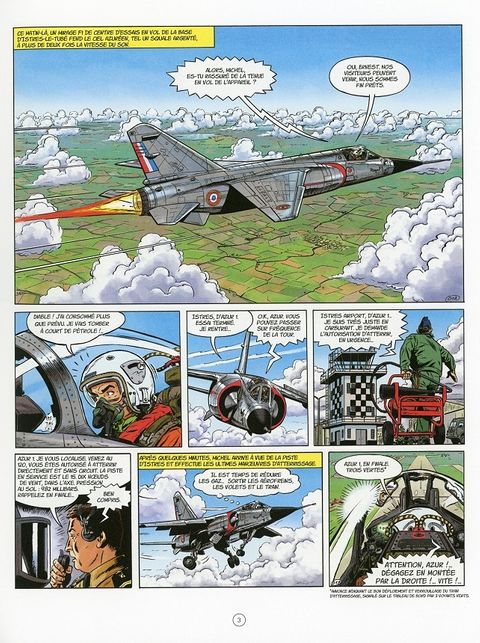 Quatre pilotes étrangers (l'américain Lewis Stinton, l'italien Cristobaldo Ruggieri, l'allemand Ernst Lübbe et le sud-africain Piet Jorgens) sont accueillis par Tanguy et Laverdure à Istres pour tester le Mirage F1 afin de le recommander aux armées de l'air de leurs pays respectifs. Dès le premier vol, celui de Lübbe, le F1 se révèle peu sûr puisque le pilote allemand perd le contrôle de l'avion et ne doit son salut qu'à l'aide de Tanguy. Quelques jours plus tard, c'est au tour de Stinton de piloter le F1 et de se retrouver près de la catastrophe alors qu'un des trains ne veut pas sortir au moment de l'atterrissage. Pour Tanguy, autant d'incidents ne peuvent être le fait du hasard. Il sait aussi que cela ne peut être un problème de conception de l'avion. Il décide donc, aidé d'un chef mécanicien et d'un ingénieur, de mener son enquête sur les raisons de ces pannes en série... Malgré ces inquiétudes, Laverdure est sur un petit nuage. Il est amoureux (une fois de plus !) d'une riche héritière, Cloryse. Tanguy ne partage pas son euphorie parce que la belle (qui se révélera être plutôt replète) veut mettre fin à la carrière de pilote de Laverdure...