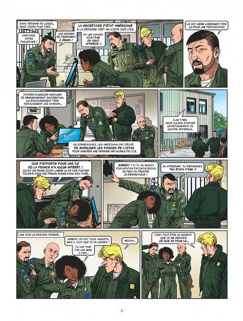 De nombreuses erreurs de dessins Un coup le commandant de la base est commandant avec des galons de colonel puis redevient colonel Laverdure Capitaine avec des galons de lieutenant qui redevient capitaine les cases d après Scénario hautement improbable. Y a du laisse aller.