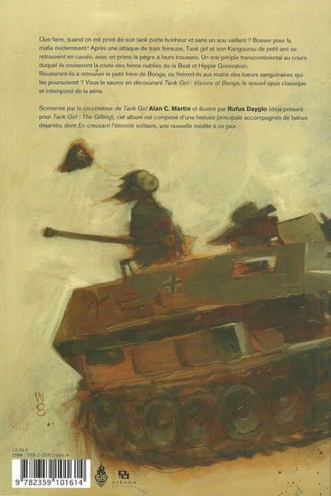 Qu'est-ce qui a bien pu lui passer par la tête ? Tank Girl, mettre son tank au clou ? Ce qui devait arriver... arriva. Elle a dû le laisser à un méchant fourgue et comme la peste est plutôt hargneuse, elle et son Kangourou se retrouvent avec la pègre australienne et de féroces chasseurs de primes au train. Bref, dans une effroyable mouise ! Après Tank Girl The Odyssey, retrouvez la belle, sans tank, mais avec sa copine Jet Girl, dans Visions of Booga. L'occasion d'un renouveau, sous forme de voyage initiatique, sous les traits de Rufus Dayglo. Cet album inédit contient également toutes les couvertures et arts originaux d'Ashley Wood !