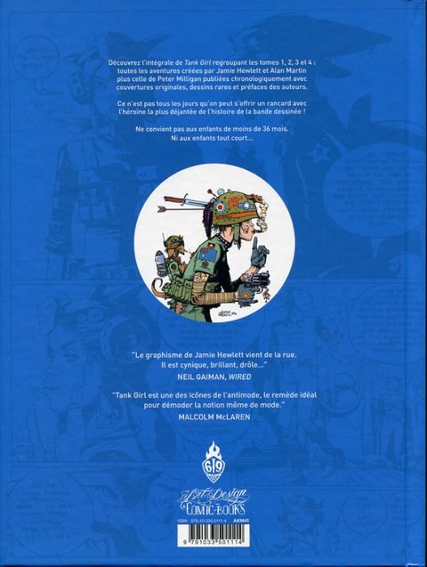 Dans une Australie post-apocalyptique où les piliers d'une société ultra-violente s'affrontent, vit Rebecca, jeune libertaire bordélique, qui ne se déplace jamais sans son Tank, d'où son surnom désormais célèbre dans tout l'outback : Tank Girl. Retrouvez dans cette intégrale regroupant les tomes 1, 2, 3 et 4 de la série Tank Girl les aventures de l'égérie de la bande dessinée britannique des années 90 créée par Jamie Hewlett et Alan Martin, où se mêlent kangourous mutants, personnages déjantés, sexe, drogue, rock'n'roll et une forte dose de provoc'.
