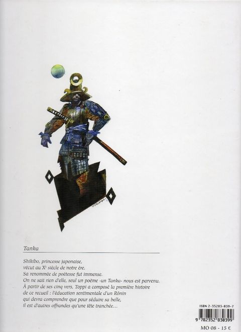 Un poème sur le fil du Katana... Shikibo, princesse japonaise, vécut au Xème siècle de notre ère. Sa renommée de poétesse fut immense. On ne sait rien d'elle, seul un poème- un Tanka- nous est parvenu. À partir de ses cinq vers, Toppi a composé la première histoire de ce recueil : l'éducation sentimentale d'un Rônin qui comprendra que pour séduire sa belle, il est d'autres offrandes qu'une tête tranchée... Toppi, fasciné depuis l'enfance par la culture nippone nous emporte dans l'univers lointain des princesses, des Samouraïs et des Rônins où poésie et violence s'entremêlent. Par un raccourci fulgurant la dernière vignette de la dernière histoire nous ramène dans le monde moderne : la poésie disparaît, la violence reste...