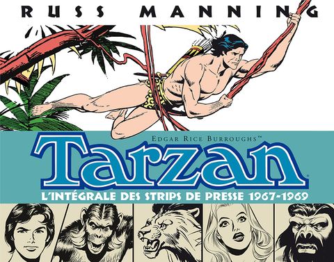 Russ Manning qui s’est illustré en produisant les adaptations en BD des romans d'Edgar Rice Burroughs (voir Les Années comics) se voit confier la création des pages de Tarzan qui paraissent chaque jour dans la presse depuis le 7 janvier 1929, avec comme condition que celles-ci soient en harmonie avec la vision du créateur. Assisté de Bill Stout, Mike Royer et Dave Stevens, qui deviendront des dessinateurs réputés, Manning illustre 9 histoires complètes en noir et blanc et 22 histoires en couleurs. L'action couvre l'ensemble des mondes créés par Burroughs: Afrique équatoriale et saharienne pleine de mystère, mais aussi les mondes perdus de Pal-ul-don aux animaux préhistoriques, Opar la cité atlante oubliée dirigée par la séduisante reine Lâ, Pellucidar le monde au creux de la Terre, Xuja la cité des fous, des mondes pharaoniques surgit du passé… Avec son dessin élégant et dynamique, expressif et précis, Russ Manning a su produire les plus grandes adaptations de Tarzan en bande dessinée. Tout ce matériel a été tiré du fonds de la Edgar Rice Burrou ghs Inc et est d'une qualité irréprochable consacrée par le Eisner Award. Ce volume couvre la période 1967-1969 et représente 7 aventures complètes. Cette édition souple de près 300 pages est proposée à un prix accessible à toutes les bourses.