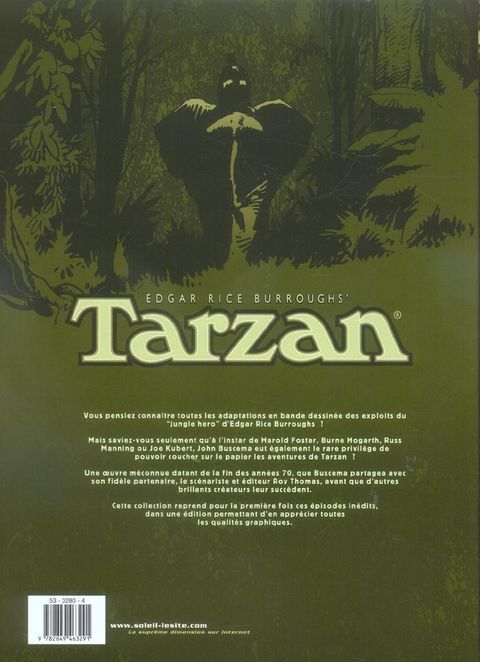 UN PERSONNAGE ÉTERNEL, UN DESSINATEUR LÉGENDAIRE, UNE ÉDITION DE PRESTIGE ! Exclusif ! Pour la première fois au monde, retrouvez, grâce à cette édition de prestige, les épisodes de Tarzan dessinés par Buscema, le dessinateur mythique du Surfer d'Argent et de Conan le Barbare. Plus d'une trentaine d'épisodes étaient, en effet, tombés dans l'oubli depuis la fin des années 70. Un régal