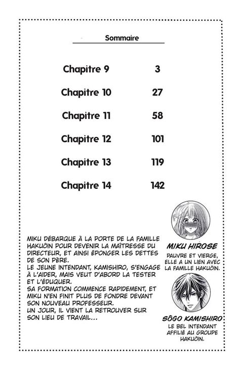 Miku décide de devenir la maîtresse du créancier de son père pour éponger ses dettes. Ce grand patron est connu pour ses nombreuses conquêtes et son penchant pour les jeunes femmes très professionnelles. Malgré toute sa bonne volonté, Miku fait face à un grand handicap : elle n'a aucune expérience. Face à son désarroi, le valet du domaine décide de l'aider en prenant en main sa formation.