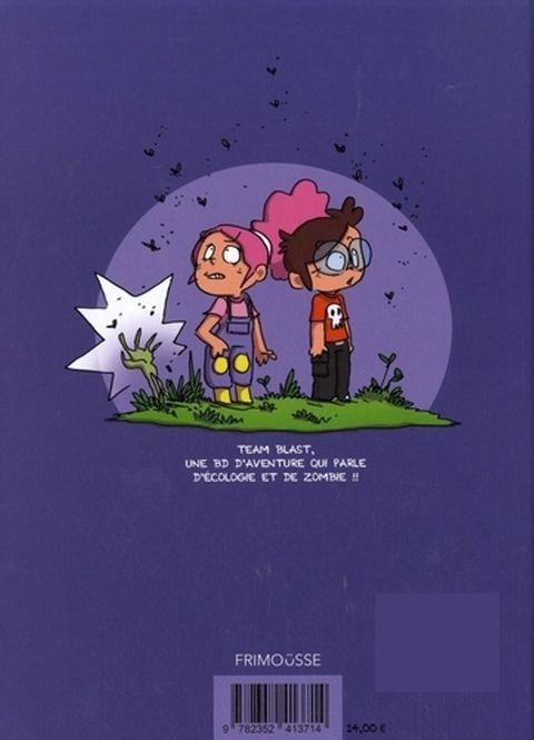 Rencontrer un zombie, ça n'arrive qu'à la Team Blast !La Team Blast, c'est un frère, une sœur et un zombie amnésique. Ce sont avant tout des aventures où la pollution se transforme, se métamorphose, se transfigure en monstre organique ou mécanique que nos trois complices devront combattre pour éviter des catastrophes pas si naturelles que ça... C'est en visitant un musée que nos deux héros, poussés par la curiosité, vont ouvrir une porte... spéciale ! Ils tombent sur Rob, un zombie gentil. Il semble bien content de rencontrer les enfants ! Il lutte contre des fléaux énormes (marées noir, surpêche, dsetruction foretière...). Mais il a bien besoin d'aide ! Armé de fusils improbables, et de leur courage, ils découvrent et démêlent des situations qui semblent inextricables. Les liens se nouent entre Rob et les enfants qui décident de lutter ensemble pour aider notre planète.