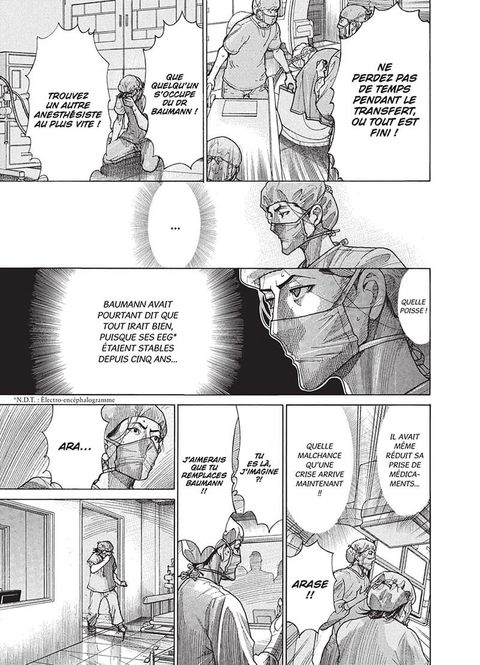 Alors que le professeur Noguchi est allongé sur la table d’opération, le Dr Baumann, anesthésiste au talent divin est victime d’une crise d’épilepsie ! Le Dr Kunitachi est déstabilisé par cet incident, tandis que le professeur Noguchi, laissé sans surveillance, voit sa tension monter. Face à l’urgence de la situation, le Dr Kato va prendre une décision capitale…