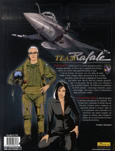 team rafale est une série d'aventures aériennes contemporaines militaires. le héros est le capitaine tom nolane, pilote de combat, mais également pilote d'essai. c'est un homme aux prises avec les aléas de notre temps et une certaine amitié amoureuse le lie à sa belle partenaire, pilote de chasse également, jessica nate. les sujets sont choisis dans un contexte géopolitique d'avant-garde afin de coller avec réalisme à une actualité brûlante. ils reflètent les problèmes de notre époque : espionnage industriel, guerre économique, terrorisme, forces d'interposition dans différents conflits... présentation alpha se déroule pendant le meeting international de djakarta. tom nolane doit y présenter le rafale afin que dassault aviation puisse remporter un important marché à l'export. mais lui et sa partenaire sont confrontés à un adversaire sans aucun scrupule, qui tentera de saboter, puis d'abattre le rafale en vol, pour écarter la france du marché du siècle.