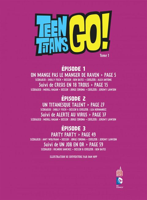 Rejoignez la joyeuse bande de Robin, Starfire, Beast Boy, Raven et Cyborg ! Quand ils ne combattent pas les super-vilains, ils tentent d’organiser la fête de la boulette ou de partir en quête du sandwich parfait en contrant les attaques monstrueuses de pizzas géantes. D’autres aventures savoureuses et pimentées au menu de Teen Titans Go ! Hummm, de la régalade et de la rigolade en barres !