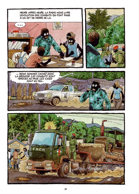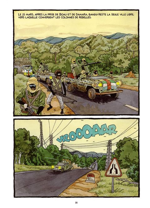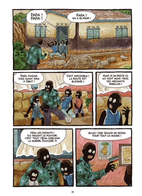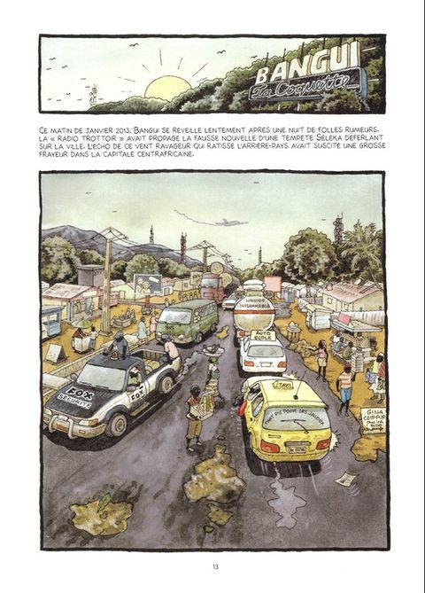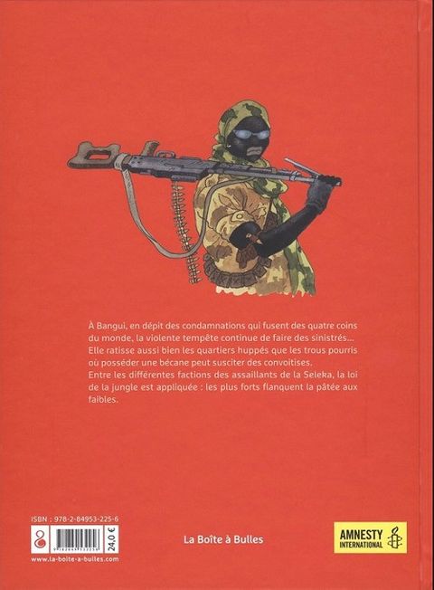 Depuis dix ans, la République centrafricaine enchaîne guerres civiles et coups d’Etat. Tant et si bien que les médias occidentaux finissent par oublier ses citoyens qui n’ont souvent que leurs jambes pour courir. Ceci jusqu’au conflit le plus violent et le plus meurtrier de cette dernière décennie : celui des rebelles de la SELEKA contre le président Bozizé, en 2013. Dans ce paysage chaotique, avant l’intervention des forces françaises, Didier Kassaï, artiste centrafricain, survit jour après jour ; il zigzague entre les grenades, les tirs de kalachnikov et les coups de machettes. Mais avec une farouche opiniâtreté, Didier poursuit son activité artistique comme un acte de résistance discret, et nous livre ici les chroniques de Bangui pris dans la tempête. Une BD 100% made in Africa qui apporte une vision unique et lucide sur la réalité du conflit en République Centrafricaine. Un ouvrage coédité avec Amnesty International.