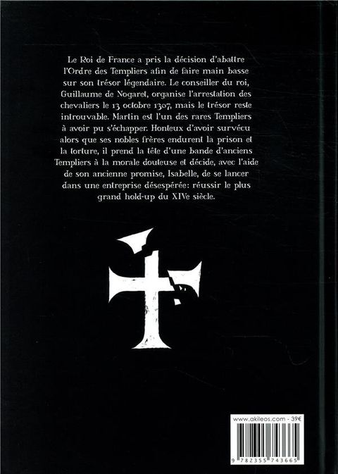 Les Chevaliers du Temple. Vénérés pour leur noblesse, leur férocité dans la bataille, et leur dévotion religieuse, les Templiers étaient des chevaliers de Dieu, exempts de tout péché et à l'âme pure. Du moins la plupart d'entre eux. Martin n'est pas exactement le plus opiniâtre ou le plus pieux des chevaliers, mais il parvient à s'échapper quand le roi de France décide d'abattre l'Ordre des Templiers afin de mettre la main sur leur légendaire trésor. Après un temps de souffrance et d'errance, il retrouve d'anciens compagnons et met au point un plan des plus audacieux... voler le plus grand trésor du monde au nez du roi.