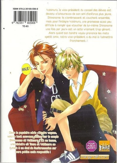 Yukimura, le vice-président du conseil des élèves est devenu ""l'amoureux"" de son ami d'enfance plus jeune, Shinonome. Ils s'embrassent et couchent ensemble, mais pour l'intègre Yukimura, une promesse aussi peu difficile à remplir que ""toucher de lui-même Shinonome une fois par jour"" est un acte vraiment trop gênant... Alors quand son tendre voyou prononce les mots ""petit ami"", notre vice-président a du mal à l'admettre franchement...!