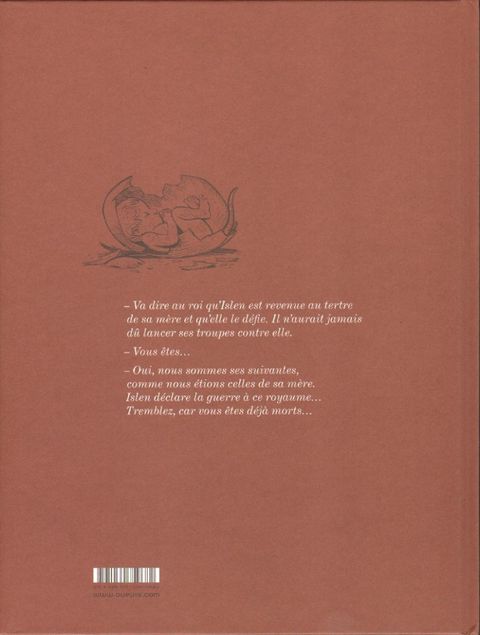 Islen, usant des terribles pouvoirs de sa mère, a déchaîné ses animaux contre son Roi de père. Échappée du château de ce dernier en compagnie d'Arzhur le chevalier déchu, elle apprend à mieux connaître cet homme qui, comme elle, cherche à échapper au poids de son hérédité... La fuite de ces âmes blessées sera-t-elle un havre de bonheur permettant à la jeune fille de ne pas assumer le destin laissé en héritage par sa mère aussi puissante que toxique ? Les trois vieilles, dangereuses harpies qui la surveillent dans l'ombre, ne perdront pas une miette de ce romantique et dramatique spectacle, au cours duquel de nombreux masques tomberont... Entre amour tragique, féminisme, matricide et grande aventure, la conclusion d'une fantasy littéraire furieusement actuelle, menée par le regretté Hubert (Beauté) et Vincent Mallié (La Quête de l'oiseau du temps).