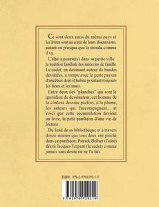 Trait-Portraits est un livre illustré. Il comporte 40 illustrations, 40 portraits d'écrivains, un petit panthéon d'une vie de lecture, qui débute avec les premiers textes de l'enfance : Enyd Blyton, puis Stevenson, Melville, etc... la grande science-fiction américaine de notre jeunesse : Philipp K Dick Franck Herbert, la bande dessinée : Moebius le maître, Chaland l'ami... Et puis les écrivains aimés au fil du temps, ceux qui ont été plus pour moi comme Jean Raspail, ceux qui comme lui ont donné lieu à une travail en images, et tous les autres qui accompagnent une vie de lecteur. Mais ce sont aussi 40 autres pages de texte, illustré également, de Patrick Bellier. Un ami qui au début de ce projet a choisi 12 auteurs, parmi ceux qu'il connaissait bien dans ce petit panthéon, ensemble nous avons ensuite choisi, 2 livres par auteur. Il les a lus ou relus, puis à travers ces lectures, a écrit ce texte où il me cherche chez ces auteurs. En quoi ai-je pu me retrouver chez eux ? Quels sont les liens de parenté, même avec ceux qui paraissent les plus opposés, il trouvera parfois dans cette quête des influences dissimulées dans les plis de la mémoire de l'auteur.