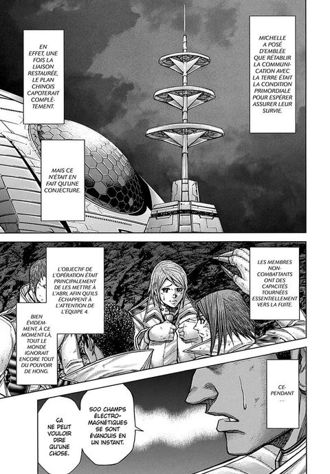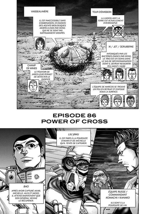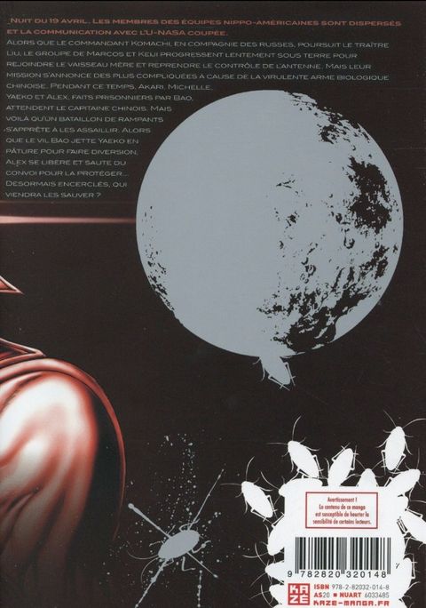 Nuit du 19 avril. Les membres des équipes nippo-américaines sont dispersés et la communication avec l'U-NASA coupée. Alors que le commandant Komachi, en compagnie des russes, poursuit le traître Liu, le groupe de Marcos et Keiji progressent lentement sous terre pour rejoindre le vaisseau mère et reprendre le contrôle de l'antenne. Mais leur mission s'annonce des plus compliquées à cause de la virulente arme biologique chinoise. Pendant ce temps, Akari, Michelle, Yaeko et Alex, faits prisonniers par Bao, attendent le capitaine chinois. Mais voilà qu'un bataillon de rampants s'apprête à les assaillir. Alors que le vil Bao jette Yaeko en pâture pour faire diversion de sa fuite, Alex se libère et saute du convoi pour la protéger… Désormais encerclés, qui viendra les sauver ?