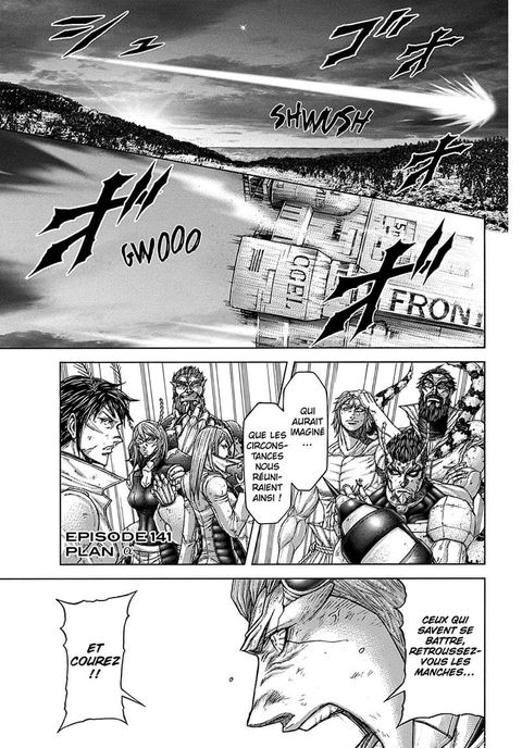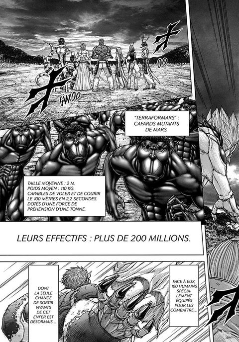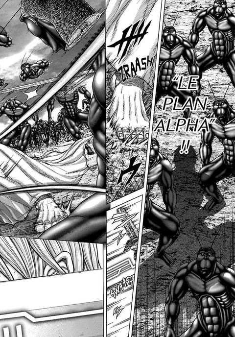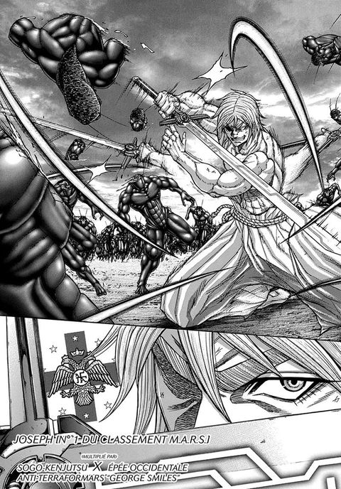 L’arrivée du “Frontier Spirit” est certes imminente, mais il reste aux deux groupes de survivants plusieurs centaines de mètres à parcourir avant d’atteindre le point de rendez-vous… Alors que les cinq officiers, Akari et Eva se serrent les coudes pour faire face aux cafards et aux attaques aériennes du Kuzu-ryû, de leur côté, Marcos, Keiji et le reste de l’équipe se retrouvent confrontés à une véritable marée de cancrelats déchaînés. Avec une unique transformation possible, une seule solution s’offre à eux : foncer droit vers le rivage en se lançant la rage au ventre dans cette monstrueuse mêlée !!