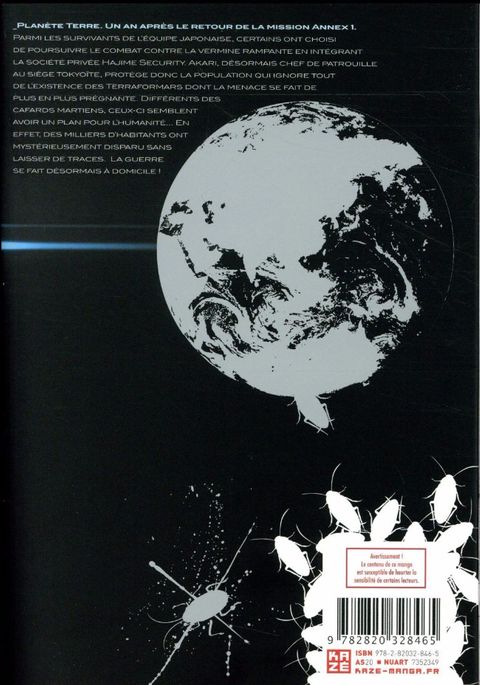 La population terrienne, en constante augmentation, épuise les ressources de sa planète. Seule solution pour éviter l'extinction : faire proliférer sur Mars l'unique forme de vie capable d'endurer son environnement et de le rendre habitable... le cafard. An 2599 : à bord du vaisseau spatial Bugs 2, quinze jeunes gens venus des quatre coins du globe, et génétiquement modifiés en vue de cette tâche, s'apprêtent à atterrir sur Mars. Et si la théorie de l'évolution ne s'appliquait pas qu'à l'Homme ?