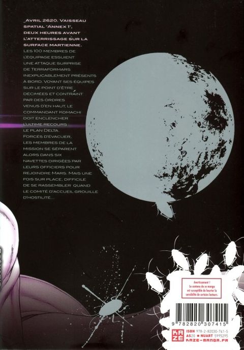 "Avril 2620. Vaisseau spatial "Annex 1", deux heures avant l'atterrissage sur la surface martienne. Les 100 membres de l'équipage essuient une attaque surprise de Terraformars inexplicablement présents à bord. Voyant ses équipes sur le point d'être décimées et contraint par des ordres venus d'en haut, le commandant Komachi doit enclencher l'ultime recours : le plan Delta. Forcés d'évacuer, les membres de la mission se séparent alors dans six navettes dirigées par leurs officiers pour rejoindre Mars. Mais une fois sur place, difficile de se rassembler quand le comité d'accueil grouille d'hostilité…"