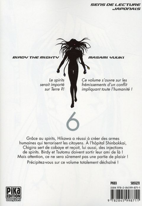 Grâce au spirits, hikawa a réussi, à créer des armes humaines qui terrorisent les citoyens. A l'hôpital shinbokkai, chigira sert de cobaye et reçoit, lui aussi, des injections de spirits. birdy et tsutomu doivent sortir leur ami de là ! mais attention, ce ne sera sûrement pas une partie de plaisir ! précipitez-vous sur ce volume totalement déchaîné