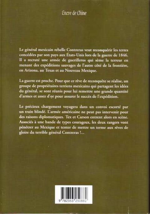 Le général mexicain rebelle Contreras veut reconquérir les terres concédées par son pays aux Etats-Unis lors de la guerre de 1846. Il a recruté une armée de guérilleros qui sème la terreur en menant des expéditions sauvages de l'autre côté de la frontière, en Arizona, au Texas et au Nouveau Mexique. La guerre est proche. Pour que ce rêve de reconquête se réalise, un groupe de propriétaires terriens mexicains qui partagent les idées du général, se sont réunis pour lui remettre une grande quantité d'armes et assez d'or pour assurer le succès de l'expédition. Le précieux chargement voyagera dans un convoi escorté par un train blindé. L'armée américaine ne peut pas intervenir pou des raisons diplomatiques. Tex et Carson entrent alors en scène Associés à une bande de types courageux, les deux rangers vont pénétrer au Mexique et tenter de mettre un terme aux rêves d: gloire du terrible général Contreras!...