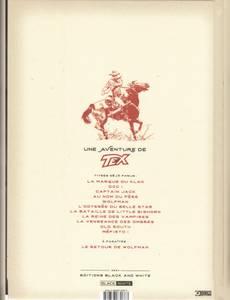 Edition limitée à 600 exemplaires. ruju pasquale (scénario) villa claudio (dessin) un album 375 pages, grand format 21,5 × 30 cm, cartonné. sept grands illustrateurs de tex réunis pour une histoire célébrant un grand anniversaire : les 75 ans d'inoubliables aventures ! contenant : – volume reprenant les épisodes issus du mensuel tex 501-502-503-504 – impression en noir et blanc intense – reprise de la couverture italienne en couleurs avec un cahier graphique
