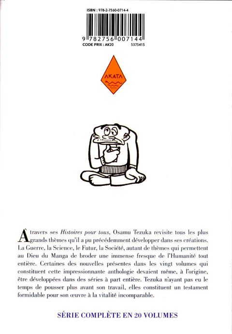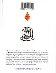 Tezuka n'est pas seulement le génie des séries longues comme Phénix ou Black Jack. Il excellait également dans le format court, pour lequel il a atteint des sommets tant graphiques que narratifs. Histoires pour tous présente une sélection de courtes nouvelles, écrites pour différents magazines entre les années 50 et 80. Il s'agit de véritables merveilles de concision et de perfection formelle, tant au niveau narratif qu'au niveau graphique. Elles ont été pour Tezuka un véritable laboratoire de création. Ainsi, chaque volume s'organise autour d'un thème fondateur d'une portée universelle.