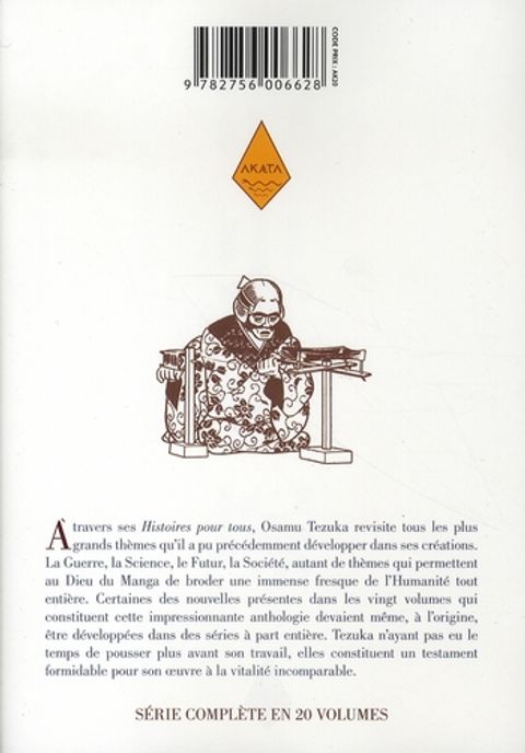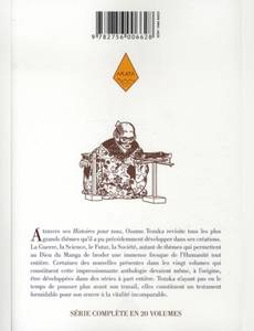 a travers ses histoires pour tous, osamu tezuka revisite les plus grands thèmes qu'il a pu précédemment développer dans ses créations. la guerre, la science, le futur, la société, autant de thèmes qui permettent au dieu du manga de broder une immense fresque de l'humanité tout entière. certaine des nouvelles présentes dans les vingt volumes qui constituent cette impressionnante anthologie devient même, à l'origine, être développée dans des séries à part entière. tezuka n'ayant pas eu le temps de pousser plus avant son travail, elles constituent un testament formidable pour son oeuvre à la vitalité incomparable.