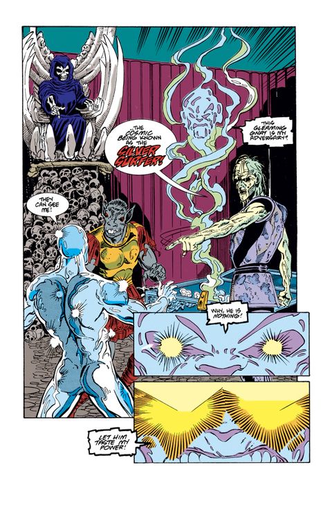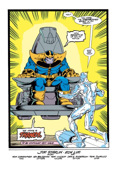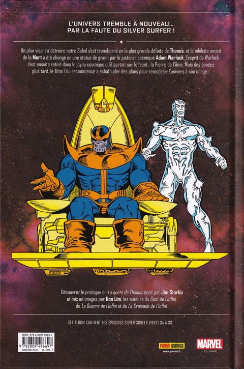 Alors qu'il erre dans le cosmos, le Silver Surfer se retrouve témoin d'un événement lourd de conséquences : La Mort vient de ressusciter Thanos, et lui demande de remettre de l'équilibre dans l'univers en tuant la moitié de ses habitants. Norrin Radd va tout faire pour contrecarrer les plans du Titan Fou, désireux d'exécuter les ordres de sa maîtresse. Dans la célèbre saga Le Défi de Thanos, le Titan Fou réunit les six Pierres de l'Infini pour annihiler la moitié de la planète. Voici réunis au format Graphic Novels les épisodes de la série Silver Surfer qui posent les jalons de la funeste quête du super-vilain.