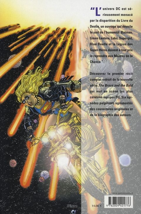 L'univers DC est sérieusement menacé par la disparition du Livre du Destin, un ouvrage qui dévoile le sort de l'humanité. Batman, Green Lantern, Lobo, Supergirl, Blue Beetle et la Légion des Super-Héros doivent à tout prix le reprendre aux Maîtres de la Chance. Découvrez le premier récit complet extrait de la nouvelle série The Brave and the Bold qui met en scène les plus célèbres équipes DC. Six épisodes palpitants agrémentés des couvertures originales et de la biographie des auteurs.