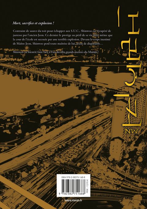 Mort, sacrifice et explosion !Contraint de sauter du toit pour échapper aux S.U.C., Shinwoo est récupéré de justesse par l'ancien Jeon.Ce dernier le protège au péril de sa vie alors même que la cour de l'école est secouée par une terrible explosion. Devant le corps inanimé de Maître Jeon, Shinwoo perd toute maîtrise de lui, avant de disparaître... Où peut donc bien se trouver le chef du clan Seonu ?Shinwoo va bientôt faire face à l'un des dix grands maîtres du Murim !