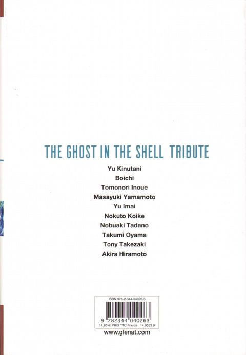 Les meilleurs auteurs réunis pour GITSL'univers riche de Ghost in the Shell ne cesse d'inspirer les auteurs actuels. Ce recueil réunit ceux-ci, avec des développements très différents : là où Yu Kinutani (GITS Stand Alone Complex), Takumi Oyama (GITS Arise) ou Nokuto Koike (6000) restent plutôt fidèles à l'ambiance des films de Oshii, Boichi ose partir dans un joyeux délire sexy propre à Shirow. En couverture, une belle Motoko Kusanagi dessinée par Akira Hiramoto hackera immédiatement votre esprit pour vous inciter à prendre ce tome dans les mains !