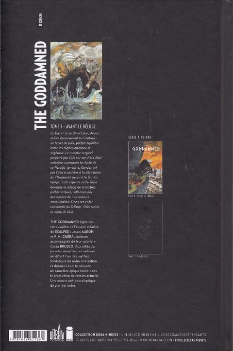 "La Terre était corrompue devant Dieu, la Terre était pleine de violence." (Genèse 6 : 11) En fuyant le Jardin d'Eden, Adam et Eve découvrirent la Création : un havre de paix, parfait équilibre entre les règnes animaux et végétaux. Le meurtre originel perpétré par Caïn sur son frère Abel entraîna cependant la chute de ce Paradis terrestre. Condamné par Dieu à assister à la déchéance de l'Humanité jusqu'à la fin des temps, Caïn arpente cette Terre devenue le refuge de monstres préhistoriques, sillonnée par des hordes de maraudeurs sanguinaires. Dans cet enfer condamné au Déluge, Caïn croise la route de Noé. Contient : The Goddamned vol.1 (#1-5)
