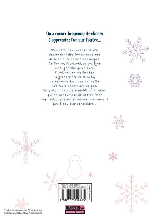 D'un côté, nous avons Himuro, descendant des temps modernes de la célèbre femme des neiges.De l'autre, Fuyutsuki, sa collègue aussi gentille qu'unique... Fuyutsuki, en visite chez la grand-mère de Himuro, se retrouve fascinée par cette véritable femme des neiges. Malgré son caractère plutôt particulier, qui ne manque pas de déstabiliser Fuyutsuki, les liens familiaux commencent peu à peu à se consolider...The Ice Guy & The Cool Girl est un manga publié originellement sur le compte Twitter de Miyuki Tonogaya. Grâce à son dessin magnifique et à ses personnages charismatiques, la mangaka nous offre une romance aussi chaleureuse que mignonne.