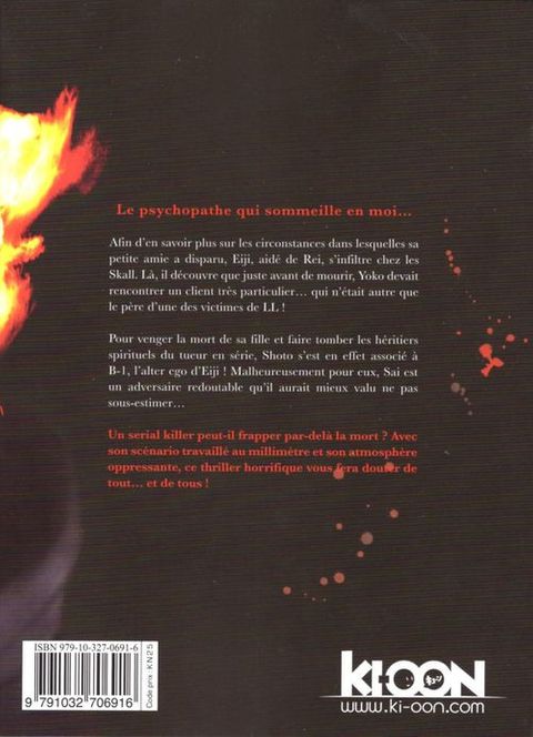 À première vue, Eiji, discret et maladroit, ne se démarque pas de la foule des étudiants de sa fac... Pourtant, il tente depuis longtemps de faire oublier au monde que son défunt père n'était autre que le tueur en série LL, tristement célèbre pour les horribles tortures infligées aux jeunes femmes qu'il a assassinées. Après des années passées à fuir la presse, Eiji a enfin réussi à trouver sa place. Mieux, il se réveille un matin avec une des plus belles filles du campus à ses côtés ! Elle lui avoue être tombée amoureuse de lui lorsqu'il l'a sauvée des griffes d'une brute épaisse. Un vrai conte de fées... dont le jeune homme n'a aucun souvenir ! Les trois derniers jours sont un trou noir dans sa mémoire, comme si quelqu'un d'autre avait vécu dans son corps à son insu... Et, pendant son amnésie, un cadavre de femme mutilé a été retrouvé dans le quartier. Pour la police, ça ne fait aucun doute : c'est du LL tout craché... Un serial killer peut-il frapper par-delà la mort ? Avec son scénario travaillé au millimètre et son atmosphère oppressante, ce thriller horrifique vous fera douter de tout... et de tous !